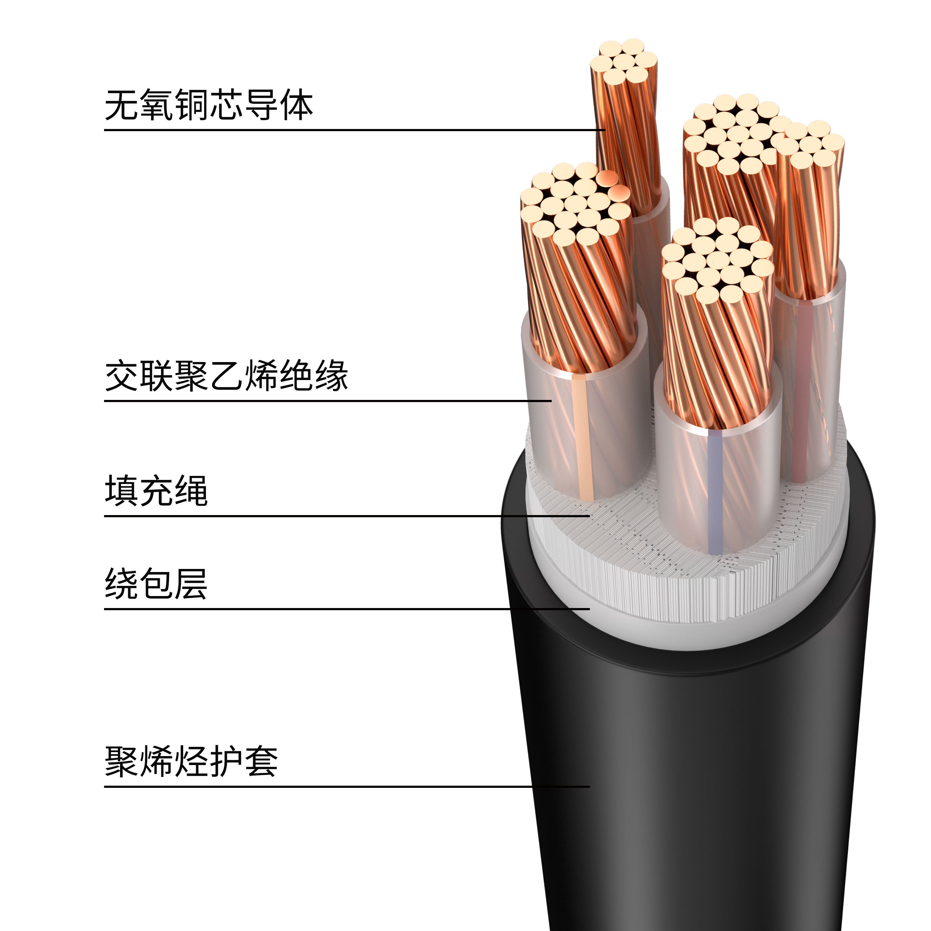 WDZ-YJY铜芯交联聚乙烯绝缘无卤低烟阻燃聚烯烃护套电力电缆